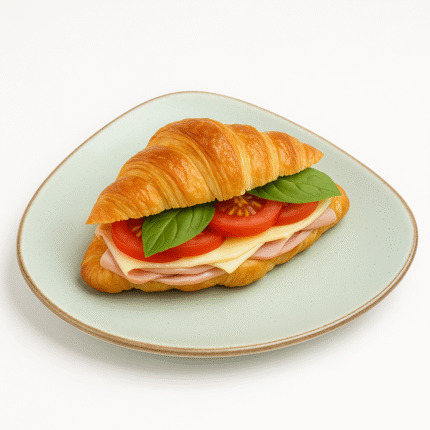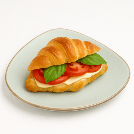 ₹230A simple yet flavorful vegetarian croissant with melted cheese, fresh tomatoes, and basil leaves, fresh, light, and delicious.