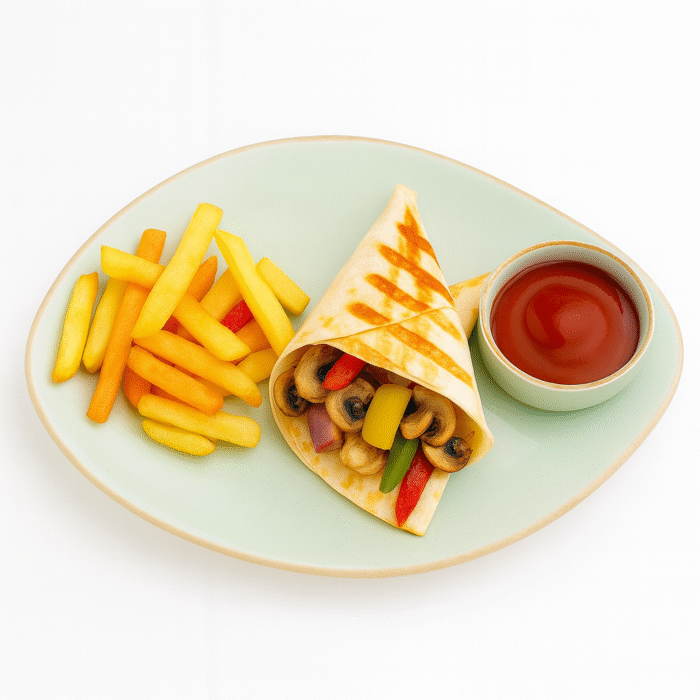 یک رَپ نرم و گریلشده، پر شده با ترکیبی از قارچ، پنیر، ذرت شیرین و فلفل دلمهای ، که با نمک و فلفل سیاه مزهدار شدهاند، در کره تفت داده شدهاند و با لایهای از مایونز پنیری پوشانده شدهاند. لذتی گیاهی و سیرکننده در هر لقمه!