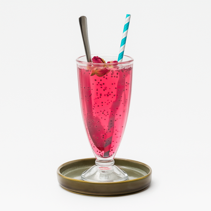 این شربت خوشعطر و خنک، ترکیبیست از گلاب اصیل ایرانی، شیرینی ملایم و غنچههای شناور رز. نوشیدنیای لطیف و آرامبخش، برای مکثی شاعرانه در میانهی روز