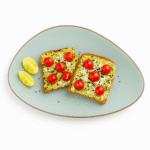 Crispy whole-grain toast topped with creamy avocado, juicy cherry tomatoes, onions, and a sprinkle of white & black sesame seeds. A light yet flavorful bite, perfect any time of day.