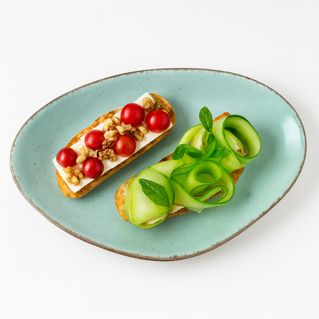 * Topped with creamy cheese, cherry tomatoes & walnuts